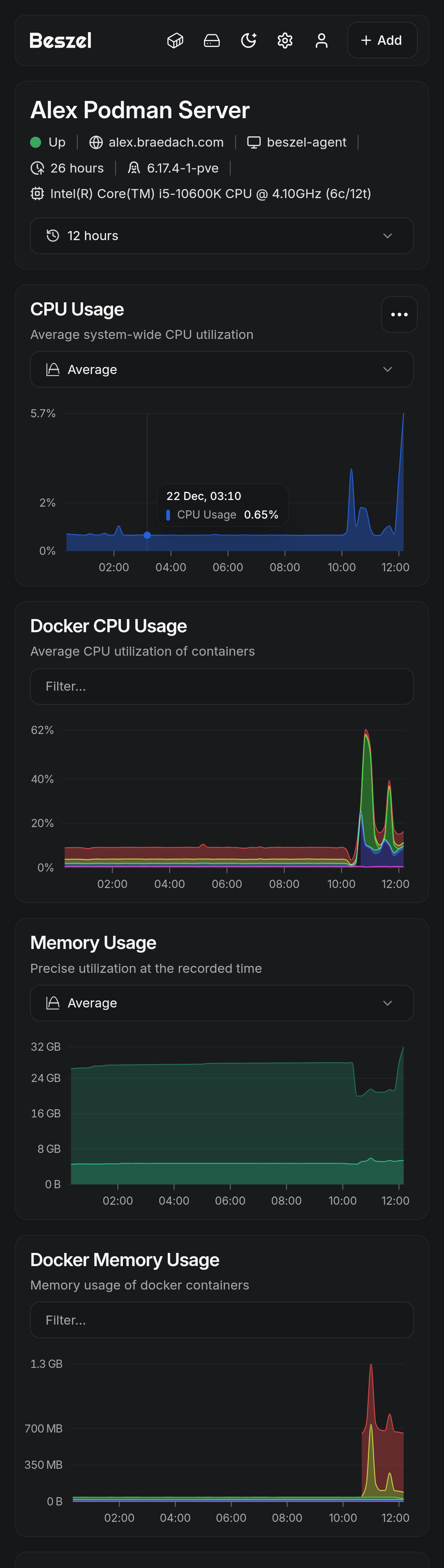 Beszel is a lightweight server monitoring platform that includes Docker statistics, historical data, and alert functions.
