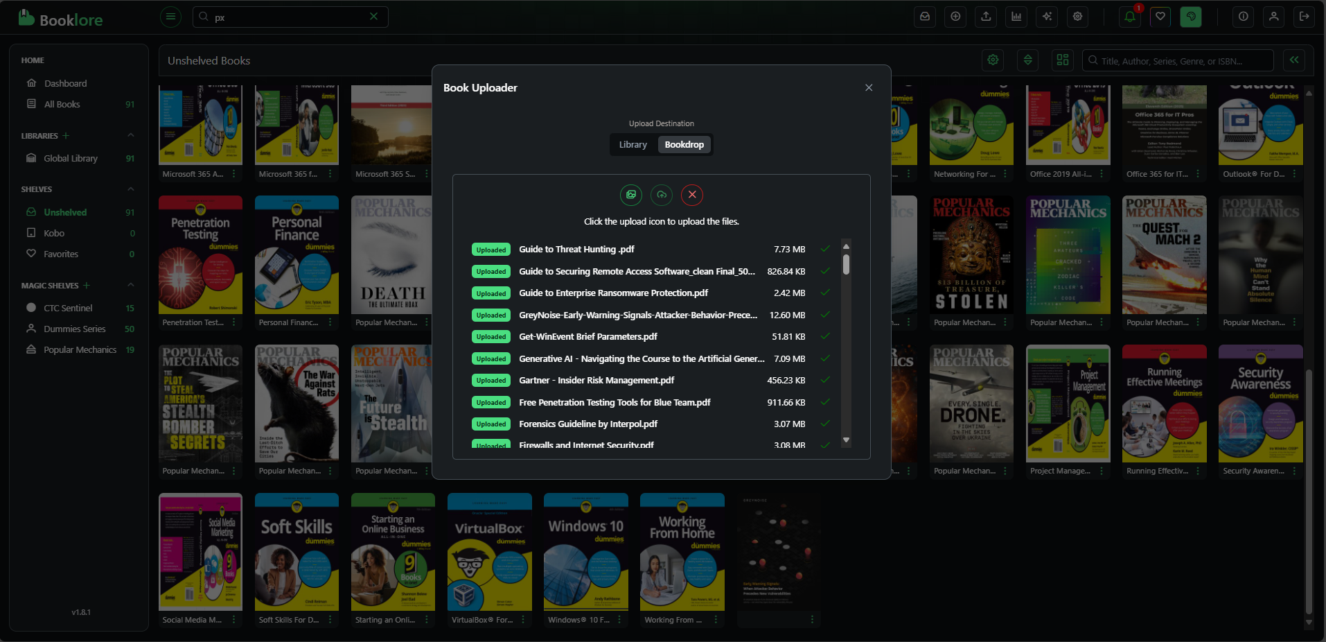 - Auto‑import new books via the “Bookdrop” folder (just drop files in and they’re instantly added)
